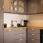 Gästerna kan laga sina egna måltider i ett kök och använda sig av matplats. Det finns också kylskåp, ugn och köksredskap i köket.